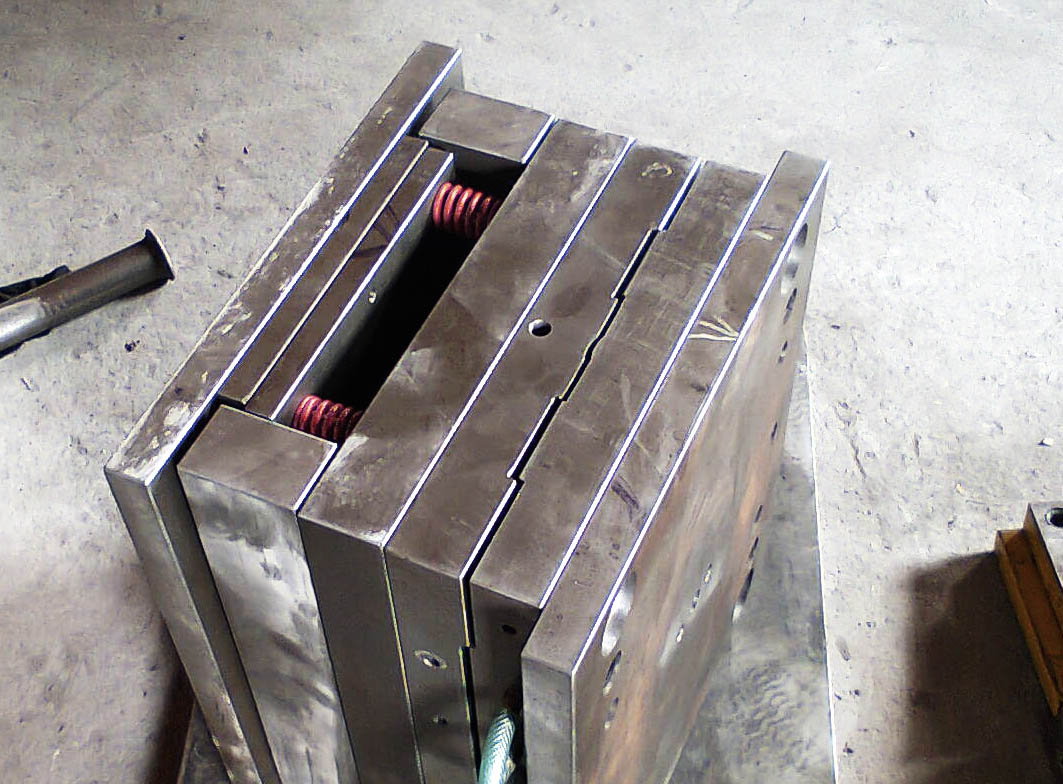 Above is one of the injection moulds that helps make the support wing of the Corsuit. These moulds are precision-machined from blocks of steel, and are exceptionally tough in order to withstand the extreme pressure produced by the injection process. This makes for a system that can produce the Corsuit in mere seconds.